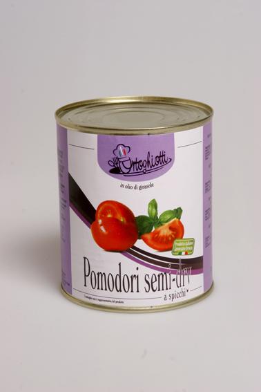 Il pomodoro a spicchi semi secco è un prodotto " Ortoghiotti" apri e gusta con caratteristiche uniche e inimitabili per qualità e metodologie di lavorazione. Il loro pregio consisté nel sapore delicato ma allo stesso tempo pieno e ricco di fragranze mediterranee e quindi facilmente abbinabile a diverse preparazioni. Prodotto versatile, di resa elevata, non acetato, adatto anche all'utilizzo a caldo in cucina. La latta da un chilogrammo, con apertura a strappo è di una praticità unica e soddisfa pienamente piccole e grandi necessità, ideale per gestire qualsiasi emergenza.